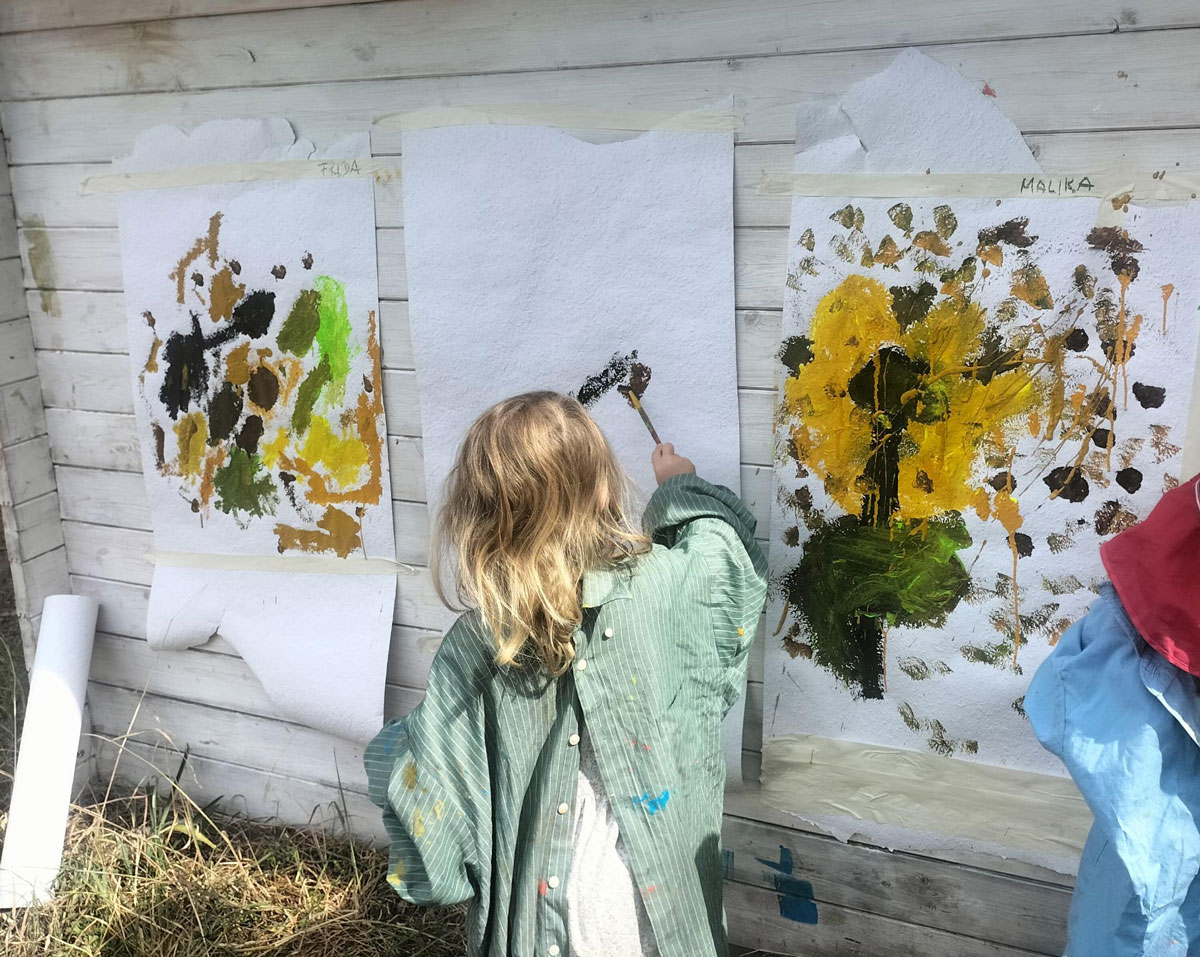 Aber auch die Kunst soll nicht zu kurz kommen, ob bei der Land-Art oder beim Freitagsmalen.